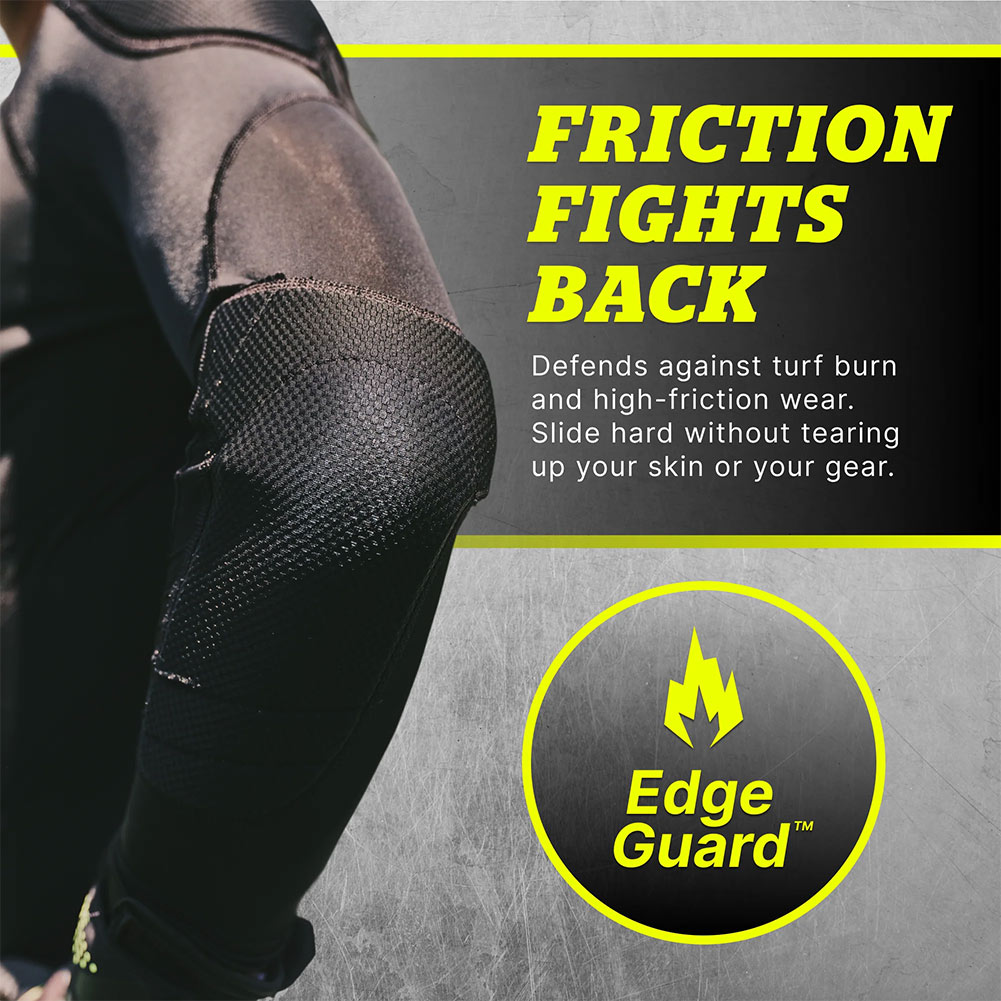EdgeGuard overlays reinforce high-friction zones to guard against turf burn and abrasion.