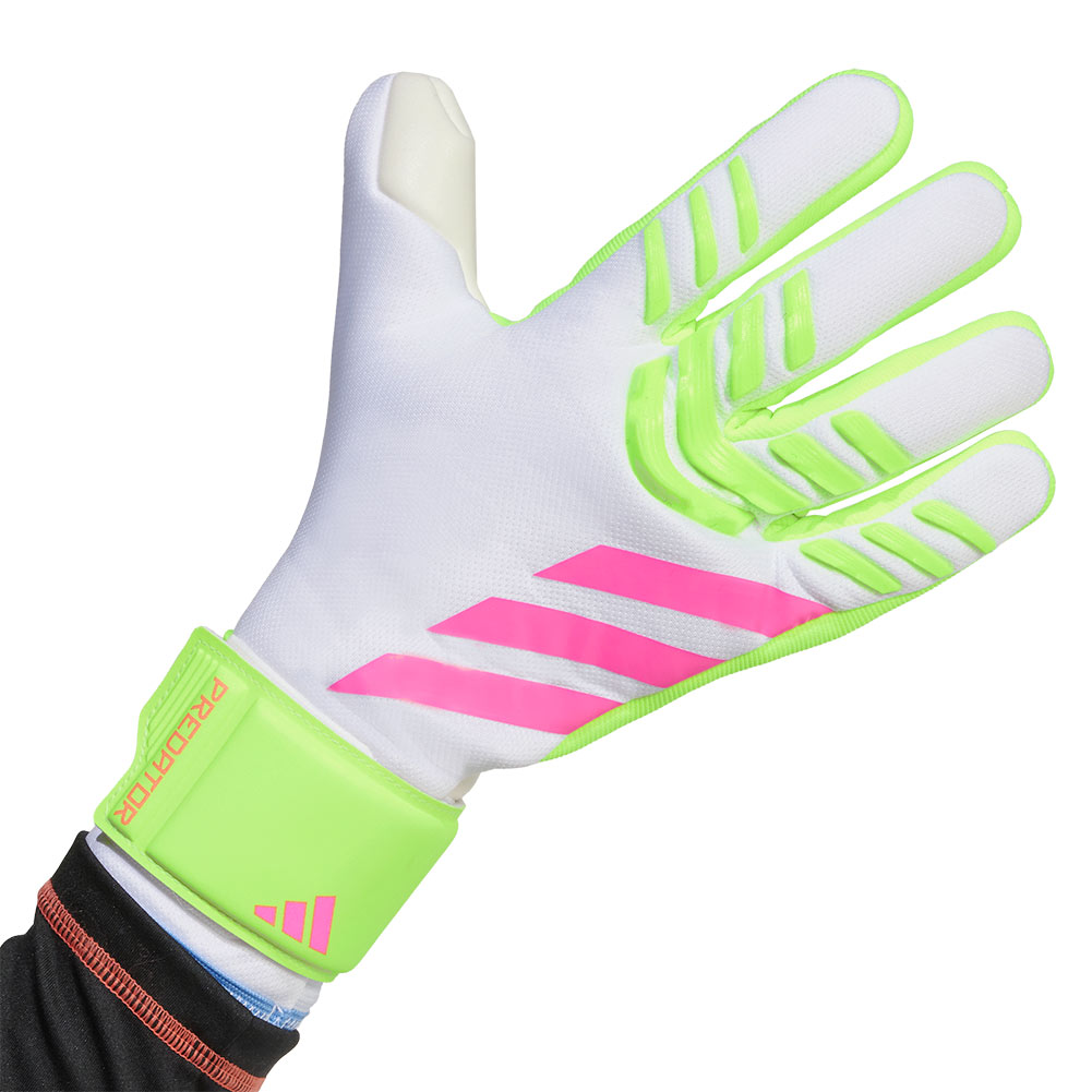 Created to give you a customisable fit, the stretchy half-wrist strap on these Predator League football gloves provides stability for comfortable handling.