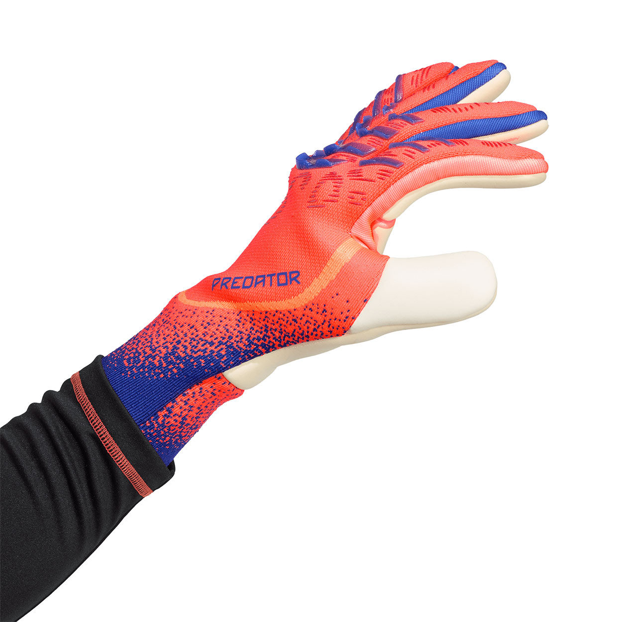 Get to the ball every time in these adidas Predator Pro goalkeeper gloves. With grippy URG 2.0 latex palms, they're engineered for imperious match day performances. The adaptive knit backhand includes silicone elements for pinpoint punching, and a strapless entry provides a natural-feeling fit at the wrist.